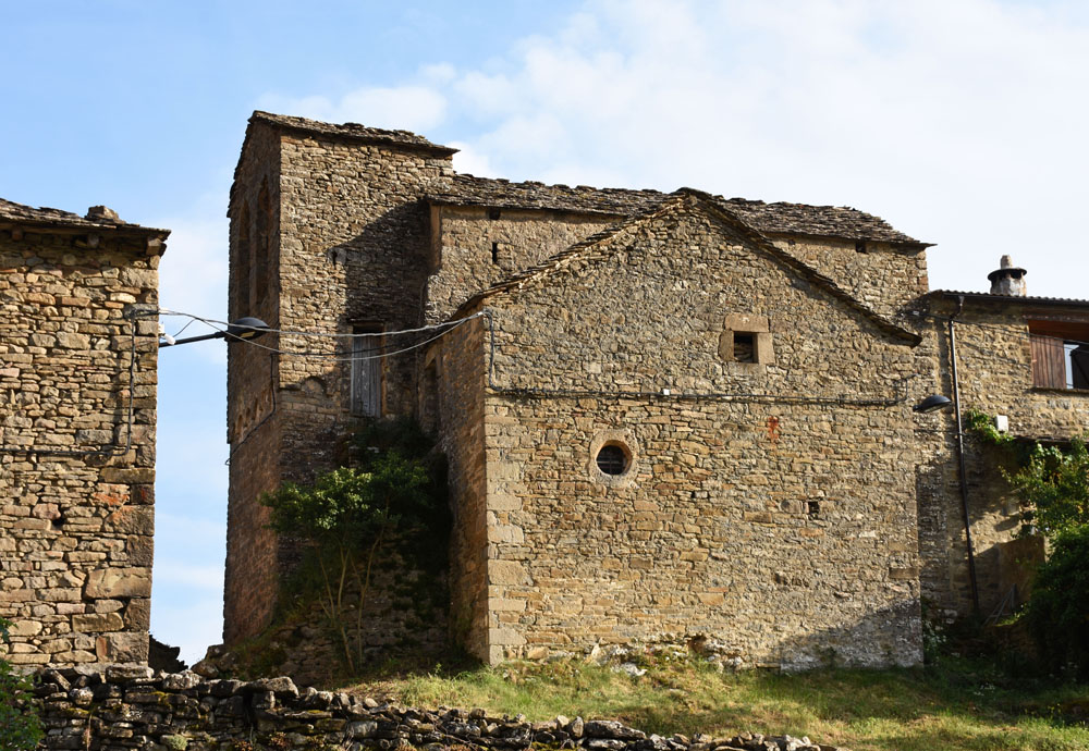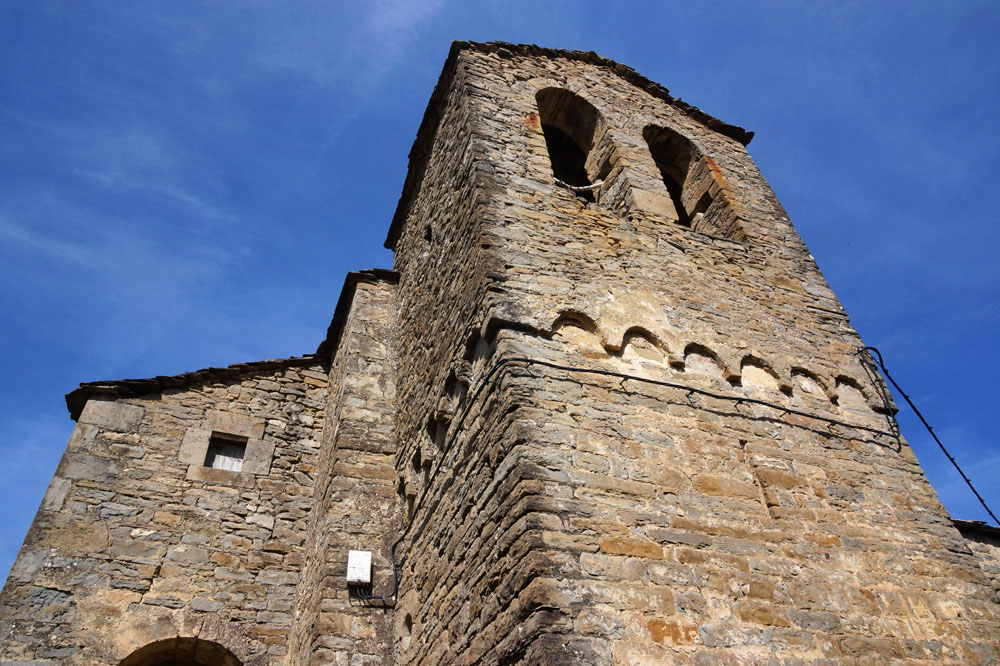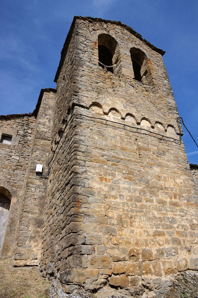 El ábside es sin duda el elemento más interesante del edificio, pues combina una planta rectangular muy arcaizante (que Antonio Durán considera de tradición mozárabe) con un friso de arquillos lombardos que decoran lo que debió ser el remate original del ábside antes de la construcción de la torre y que permiten fechar su construcción en un momento avanzado del siglo XI. Se trata de una solución formal idéntica a la de la cercana iglesia de Santa María de Belsué, sobre la cual también se elevó una torre.