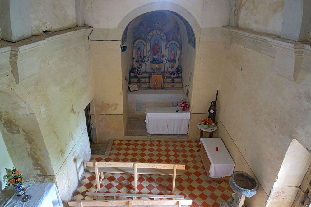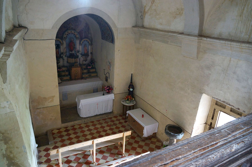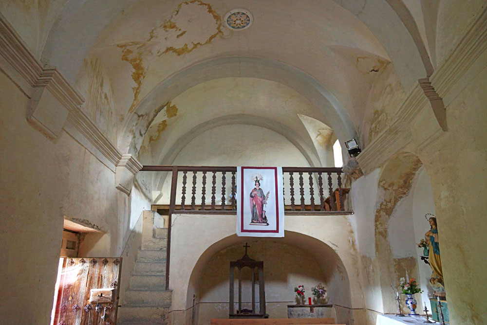 Tiene coro alto a los pies, sobre sotocoro abovedado con medio cañón, al que se accede a través de una escalera de obra apoyada en el muro sur.