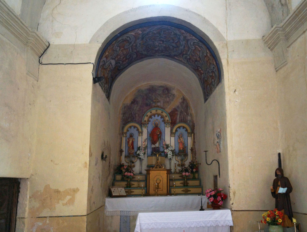 Al interior consta de una única nave de tres tramos, cubierta mediante bóveda de cañón con lunetos reforzada por arcos perpiaños de medio punto que apean en un sencillo entablamento decorado con listeles escalonados. El ábside, considerablemente más estrecho, se abre a la nave a través de un arco de medio punto y está cubierto con bóveda de medio cañón.