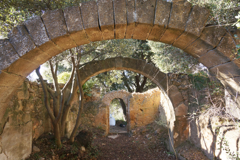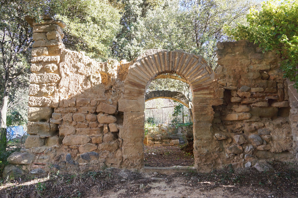 Su interior está dividido en tres tramos por dos arcos diafragma de medio punto, realizados con sillares, que sostenían la cubierta, totalmente hundida en la actualidad, que parece haber sido una bóveda de medio cañón.