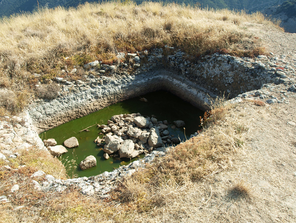 En sus proximidades hay dos grandes aljibes, excavados bajo un resalte de piedra de la plataforma superior, cercados con muro de piedra y protegidos por la plataforma rocosa. Son de planta rectangular, grandes dimensiones (20 m de longitud por aproximadamente 3 de anchura, y 1,10 m de profundidad, y presentan el interior revocado por mortero de cal para impermeabilizar la obra.