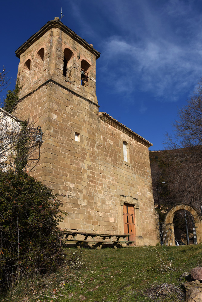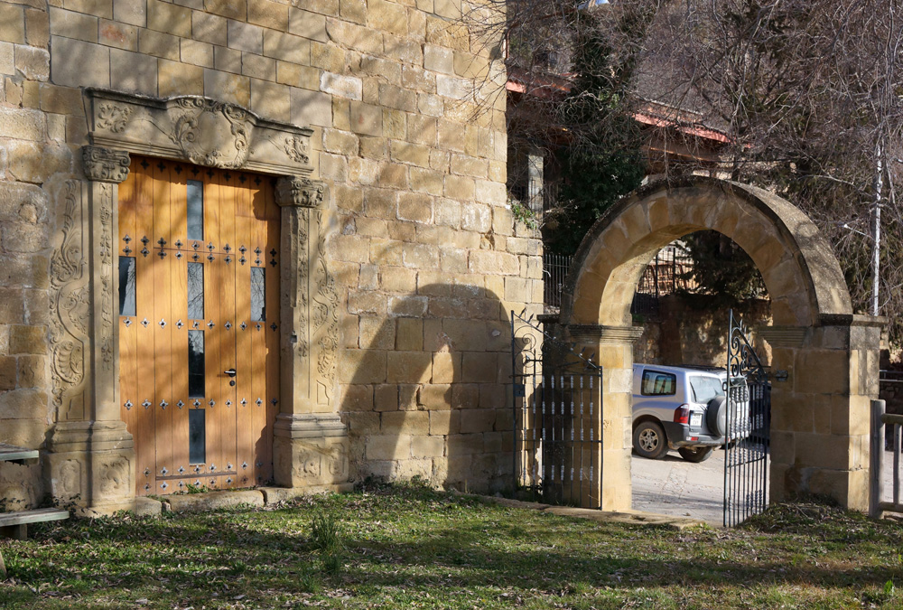 Por último, debe recordarse que en el acceso al recinto parroquial se ha instalado uno de los arcos del antiguo pórtico del edificio. Es un gran arco de medio punto con el trasdós recorrido por una gruesa moldura saliente y el intradós también decorado mediante una sucesión de finos listeles. Apea en salmeres decorados con listeles escalonados y jambas de sillería que parecen haber sido reconstruidas con materiales procedentes del desaparecido pórtico.