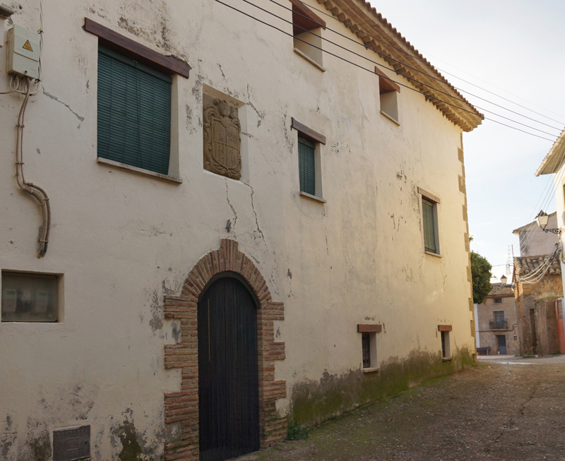 El único elemento realmente antiguo que se conserva en la fachada es el escudo de armas, situado en la planta principal, sobre la puerta. Pertenece a la familia de los Seral, tal como indica la inscripción de la cartela situada en su base: “ARMAS DE LOS SERALES”. Está coronado por timbre de hidalguía y enmarcado por volutas y guirnaldas vegetales. El cuerpo está cuartelado, presentando en sus cuatro cuarteles los siguientes motivos: en cantón diestro en jefe, torre con guerrero armado con lanza ante ella; cantón siniestro en jefe, grupo de cinco árboles; cantón diestro en punta, tres barras verticales, la central de las cuales es cortada por una circunferencia; cantón siniestro en punta, personaje con un hacha y una sierra en las manos. Sobre el escudo aparece la inscripción “AÑO 17??”.