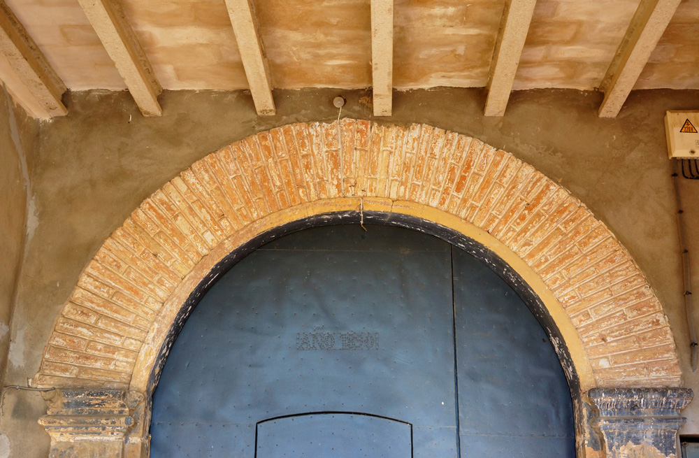 Junto a ella se encuentra la portada barroca. Es un vano en arco de medio punto realizado mediante ladrillo dispuesto a sardinel, sobre jambas de piedra.