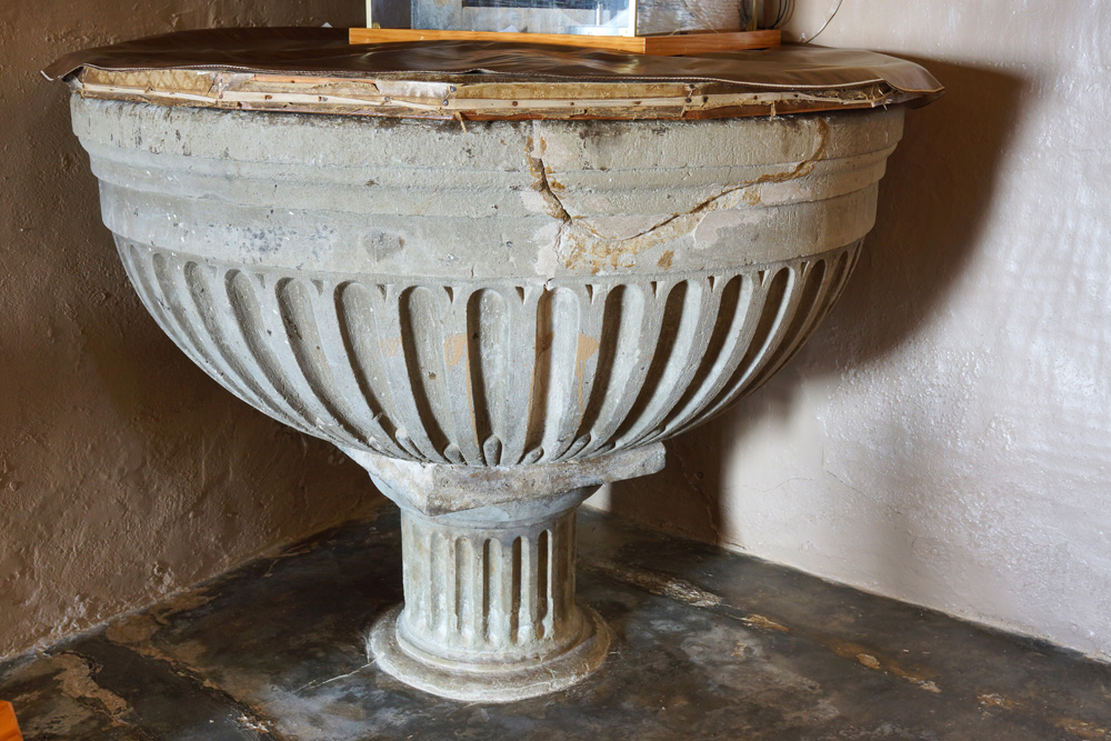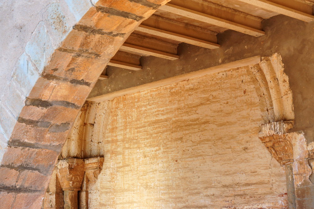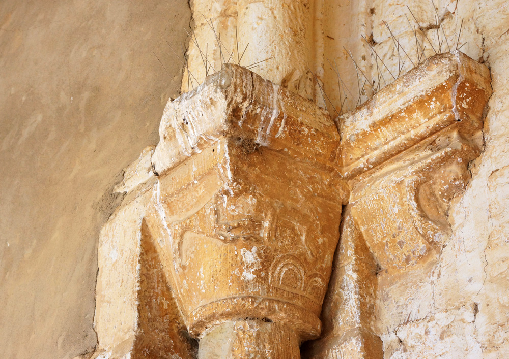 Quedan escasos restos de la primitiva construcción románica. El más visible es la antigua portada, actualmente en desuso y cegada al interior,