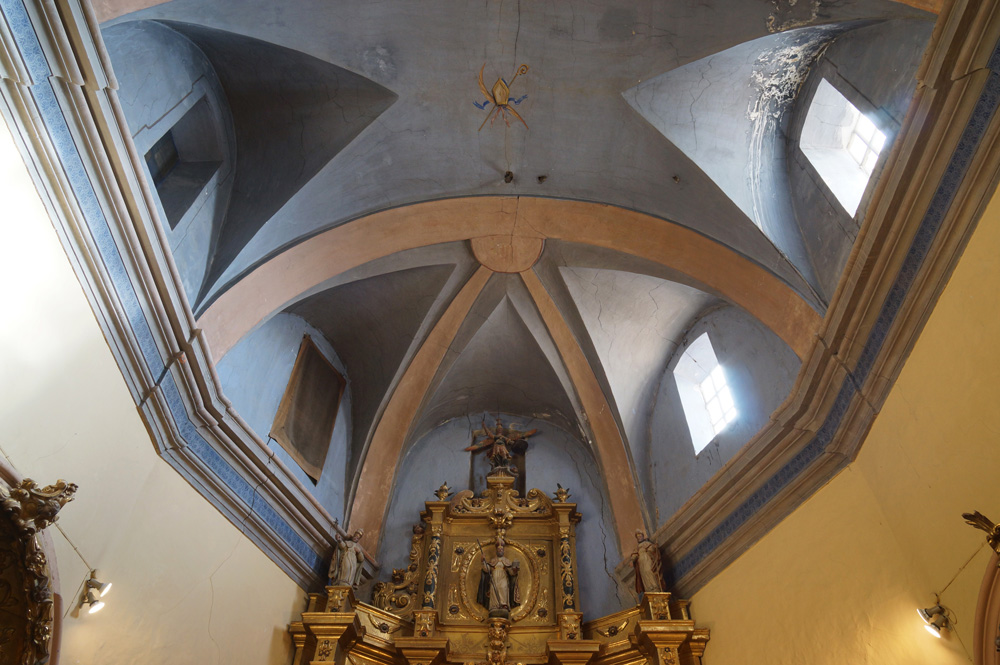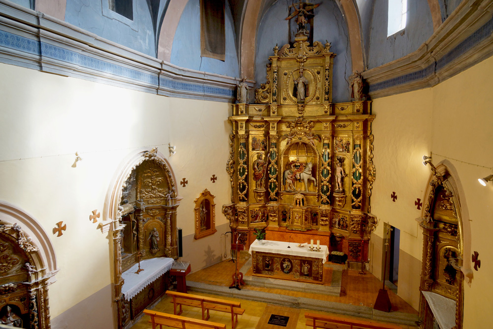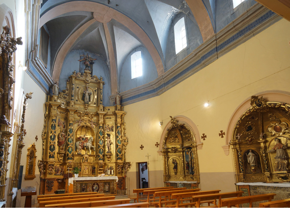 El interior está compuesto por la única nave, en la que se abren arcosolios en arco de medio punto que cobijan altares secundarios, y el ábside poligonal. Tanto este como la nave, dividida en tres tramos, están cubiertos mediante bóvedas de lunetos.