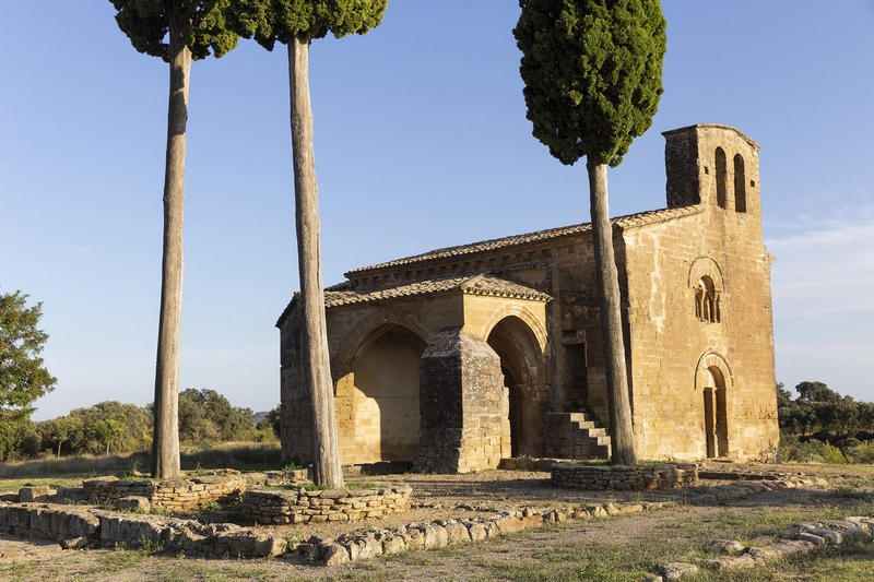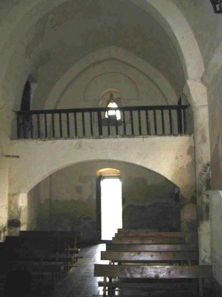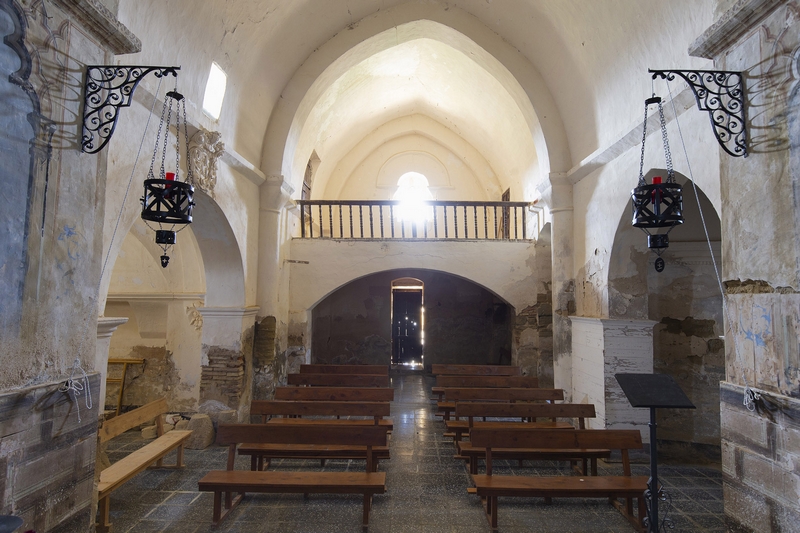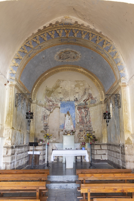 La nave está cubierta por bóveda de cañón apuntado dividida en dos tramos por fajones apeados en medias columnas con capiteles geométricos. El ábside se cubre con bóveda de cuarto de esfera. Las capillas laterales son posteriores al resto del edificio; la del norte se cubre con bóveda apuntada; la opuesta, con bóveda de lunetos.