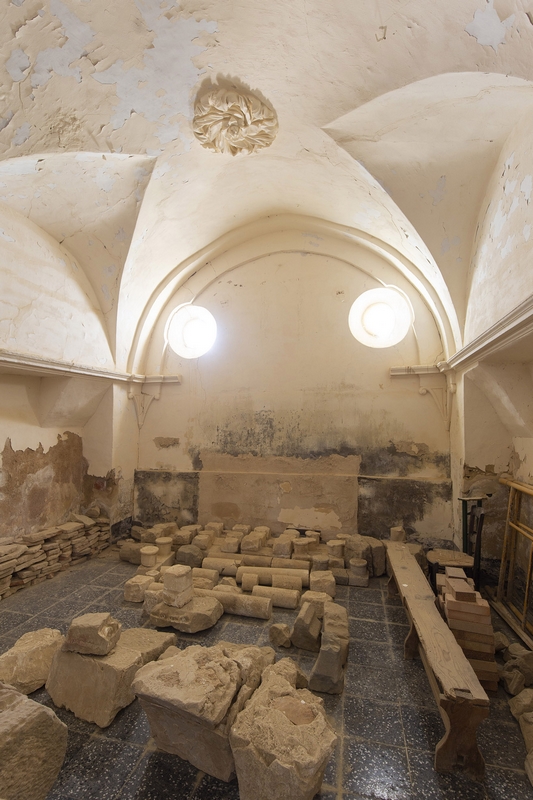 Se eliminaron los elementos añadidos de las fachadas en el atrio y la capilla norte. Asimismo, se consolidaron y restauraron las cubiertas, se consolidó el muro oeste y se repararon o sustituyeron los sillares dañados en algunas zonas (especialmente en el sector norte).