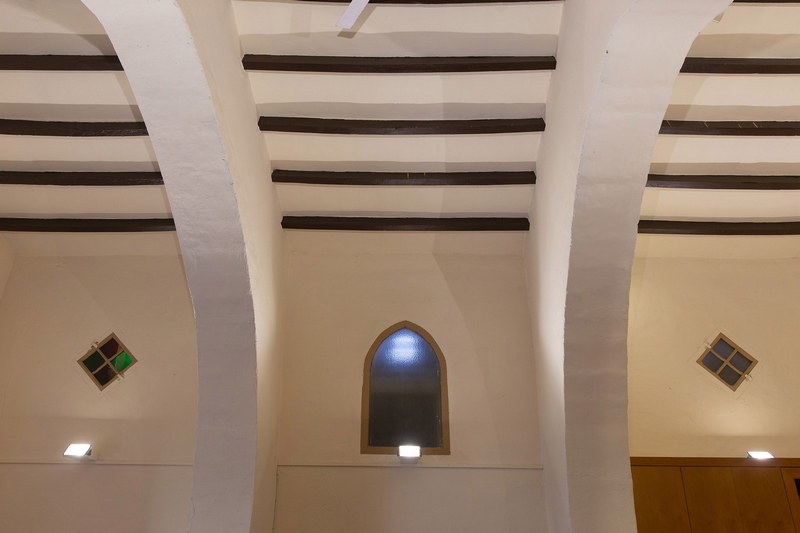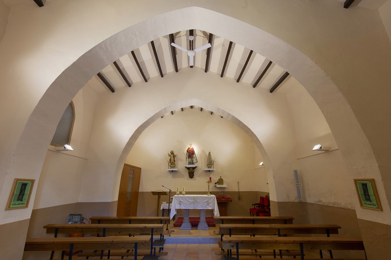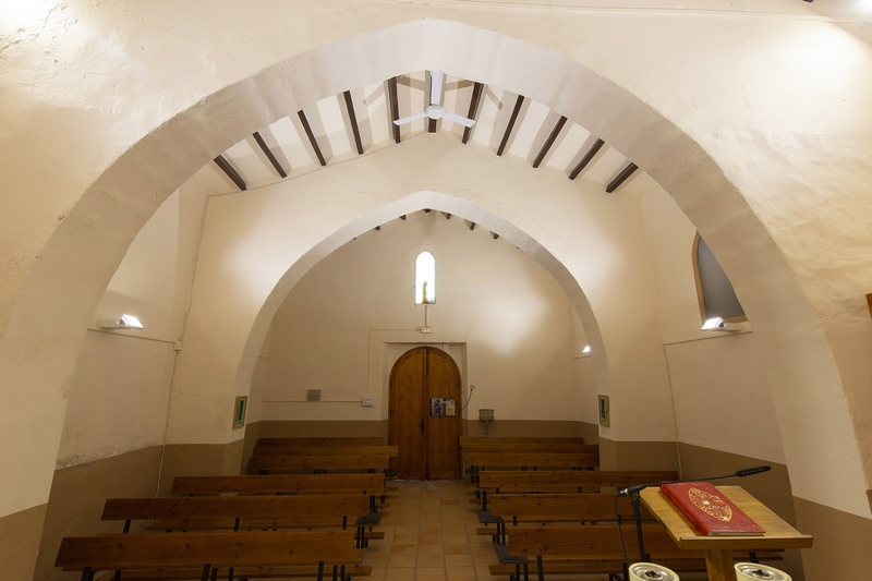 Está dividida en tres tramos por dos arcos diafragma apuntados que sostienen una cubierta de madera a dos aguas. Se encuentra muy rehabilitado.