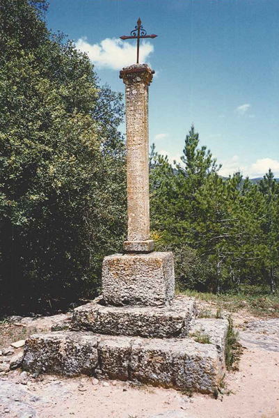Crucero de caña poligonal. En una de sus caras porta una inscripción piadosa concitando a la oración y el arrepentimiento. Fechada en 1880.