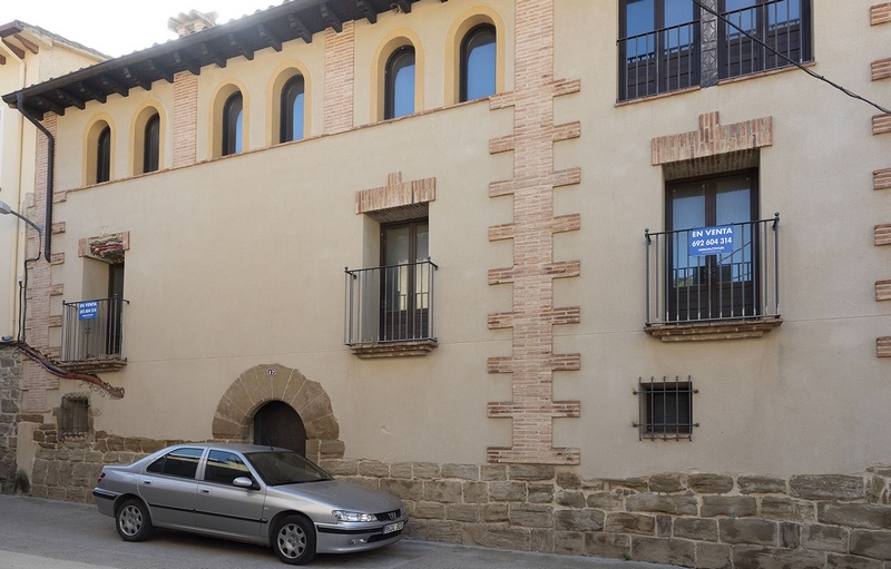 A ambos lados de la portada se abren dos pequeños vanos, destacando el de la izquierda por su contorno pétreo, adintelado, con jambas de pequeños sillarejos en alternancia horizontal y vertical y alféizar moldurado. En el primer piso hay tres grandes balconadas, simétricas entre ellas, entre las que destaca su dintel de ladrillo a sardinel y su alféizar conformado por tres hiladas de ladrillo recto escalonadas. El piso superior, en sus dos tercios de la izquierda, presenta una galería de arquillos de medio punto, dispuestos en pares y separados por bandas verticales de ladrillo hasta la cornisa. Vanos que también se extienden por las otras fachadas del edificio y que están apoyados en una hilada de ladrillo recto a modo de cornisa. En la vertiente derecha de esta fachada principal hay un doble ventanal separado por un parteluz con decoración romboidal de fábrica moderna.