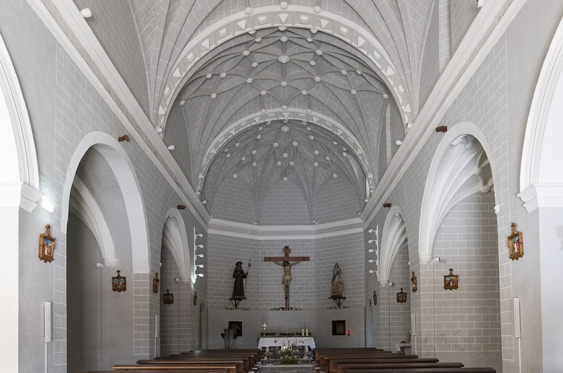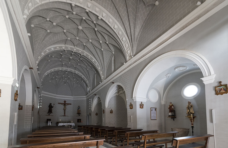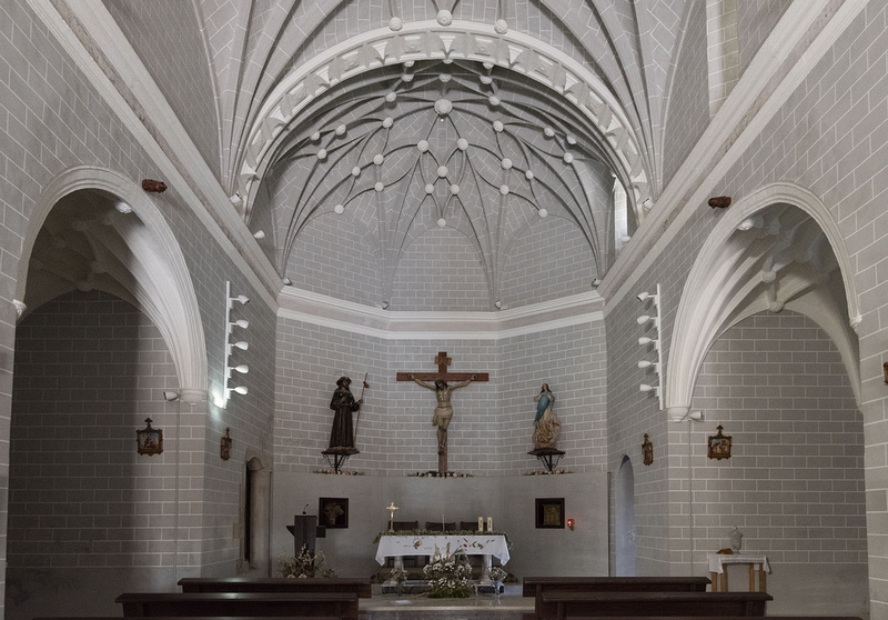 Es un edificio realizado en piedra y ladrillo (en el hastial del O). Consta de una nave, en la que se abren 6 capillas laterales, y ábside poligonal. La cabecera y la nave están cubiertas con bóveda de crucería estrellada, a excepción del tramo de los pies, que lo hace con bóveda de lunetos.