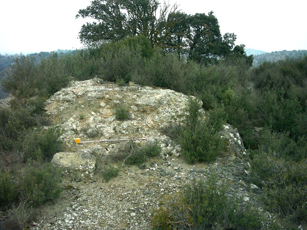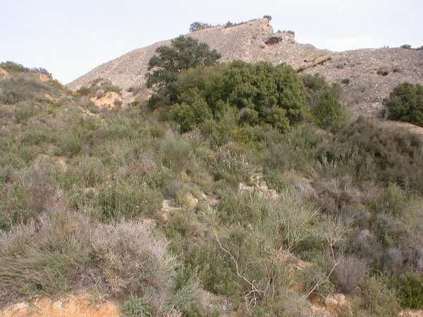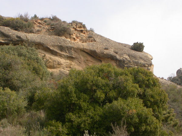 El hábitat se ubica a ambos lados de la cresta de arenisca, ya que entre la maleza se aprecian en superficie restos de muros y abundante material cerámico, predominando las cerámicas grises de cocina de cronología hispano-musulmana.