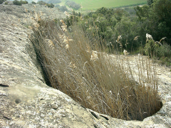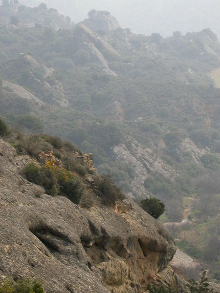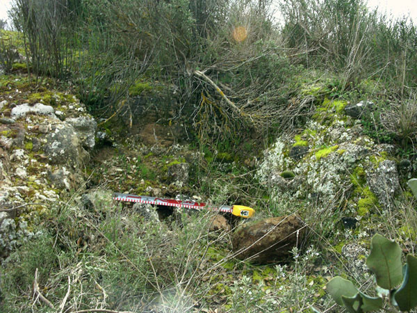 Frente al conjunto, al otro lado del río, se observa en superficie un grueso muro de piedra. A través de una abertura en la ladera, ocasionada por un deslizamiento de tierras, se accede a una cámara de planta semicircular, de paredes talladas en la piedra, y cerrada en su frente por el mencionado muro. Su función y cronología resultan difíciles de determinar.