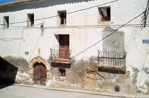 Casa con fachada dispuesta en tres alturas y gran desarrollo horizontal, que conserva primer cuerpo y portada en piedra sillar.