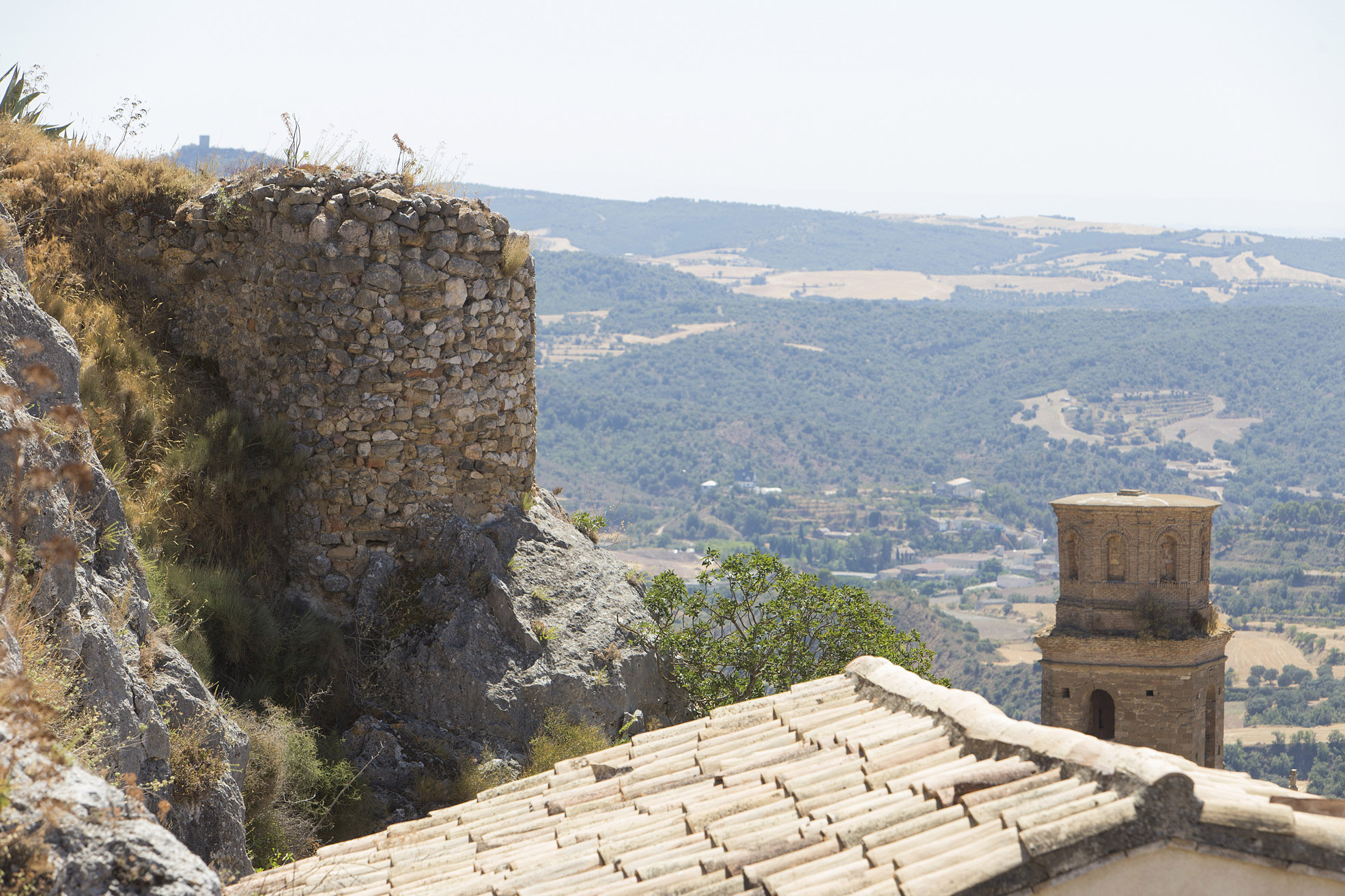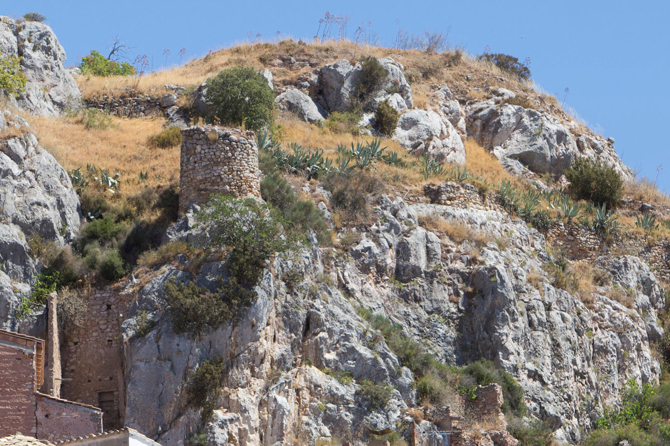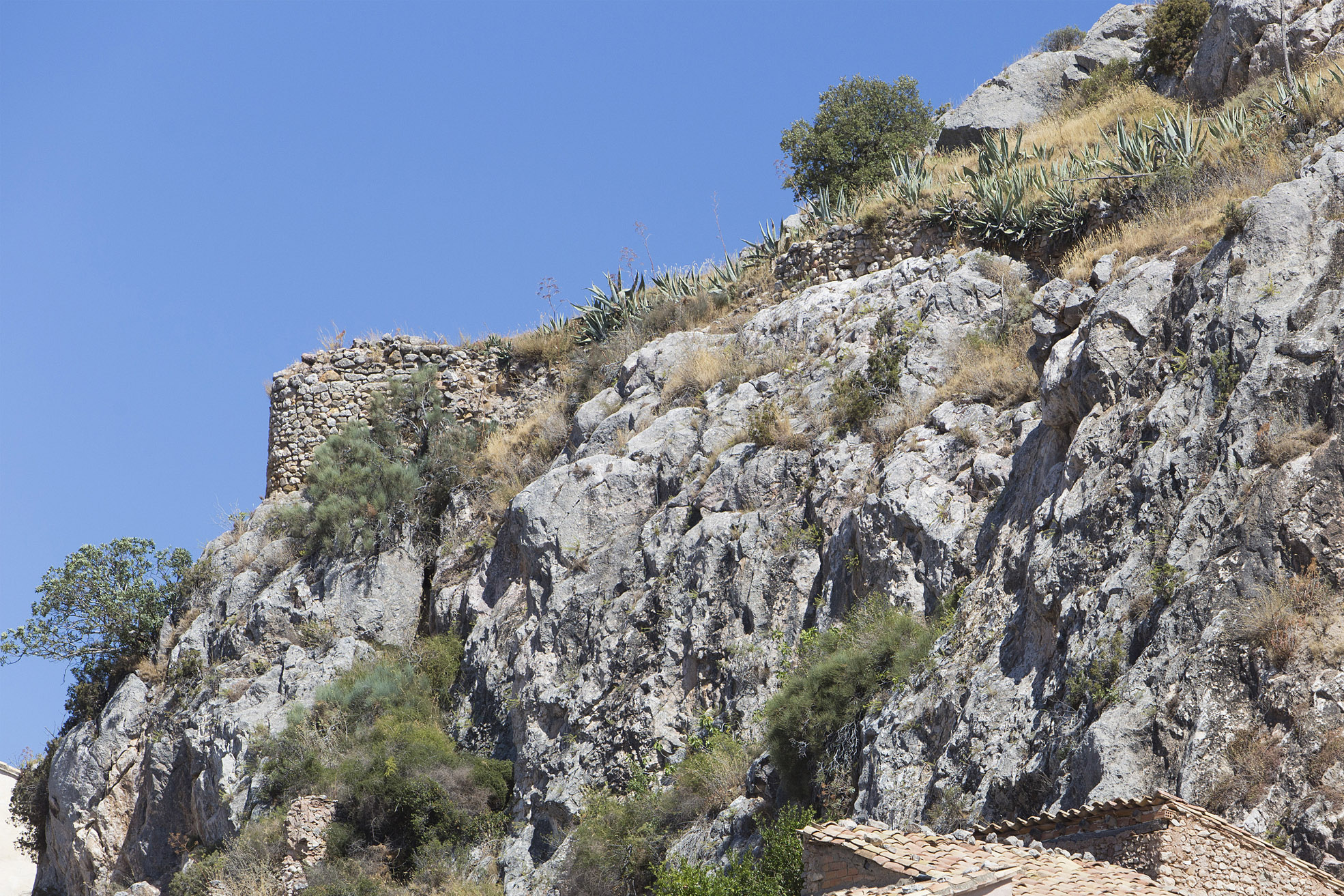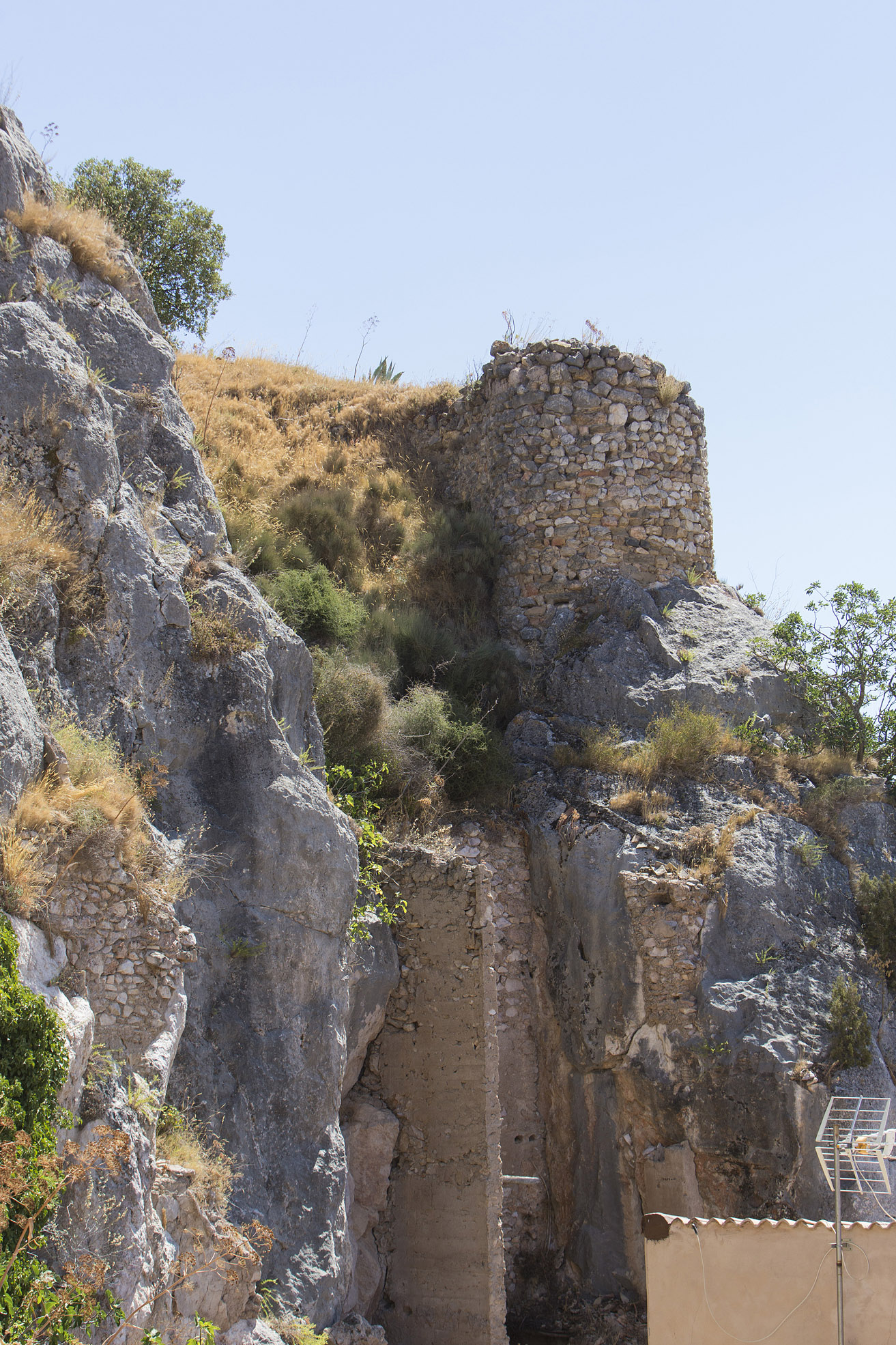 Del recinto murado quedan algunos restos en forma de lienzos de muralla, pero la construcción más importante conservada es un torreón circular, algo rebajado en altura y que se sitúa a un nivel inferior.
