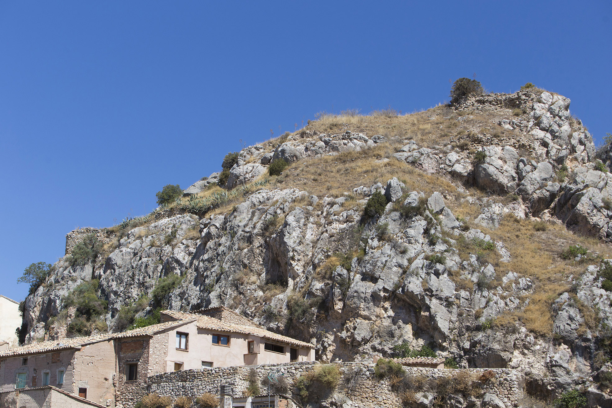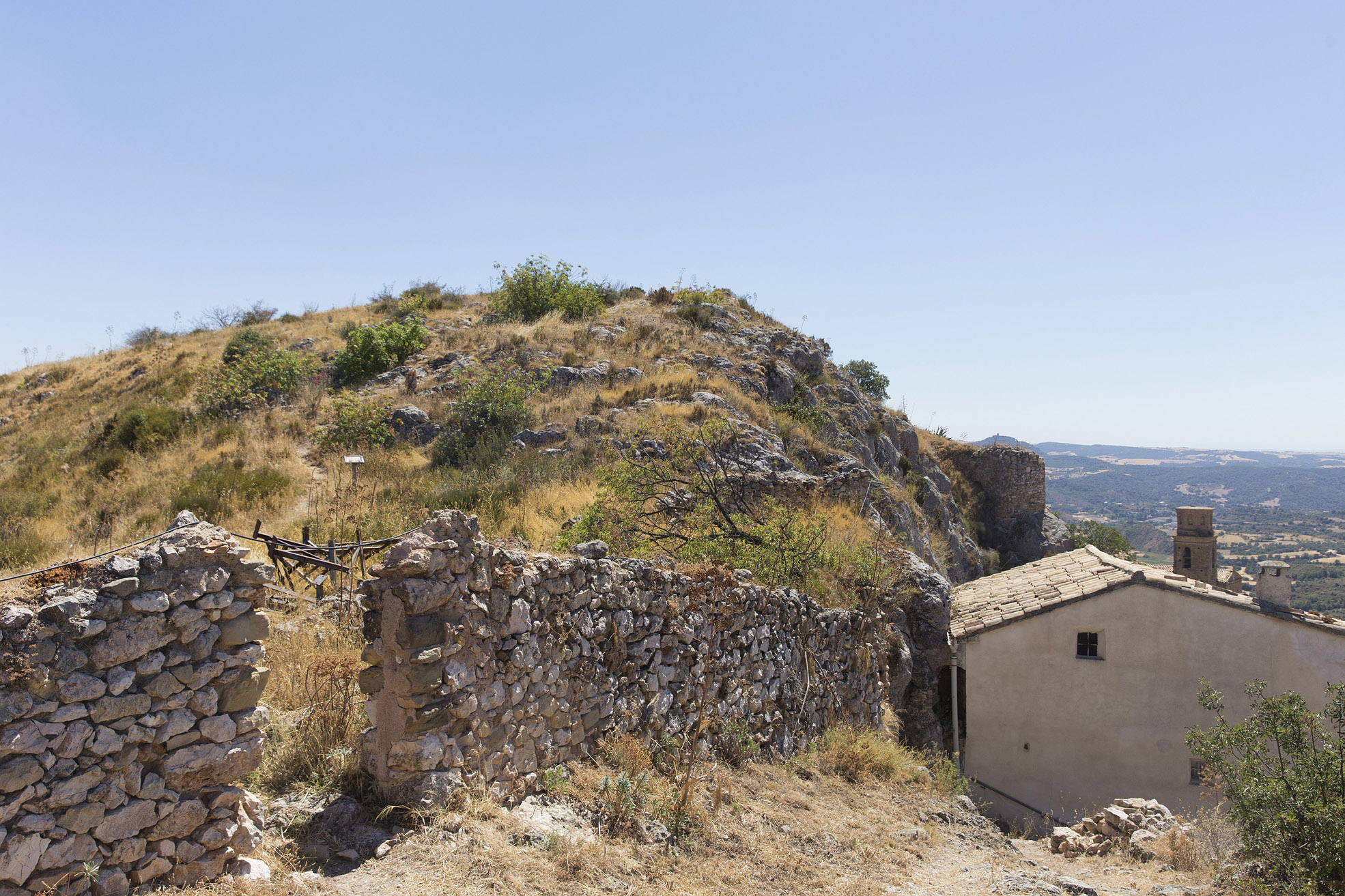 El castillo se encuentra en la cúspide de un promontorio rocoso, alargado y estrecho, a una cota más alta que la población.
