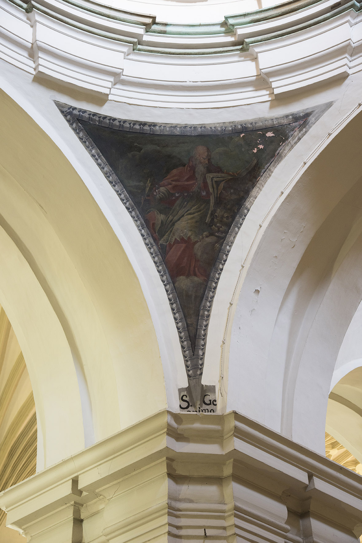 La iluminación se logra mediante los óculos que iluminan el coro, dos óculos abiertos en los paños laterales de la bóveda del ábside decorados con marco de yeso de gusto dieciochesco y los lucernarios de las capillas laterales.