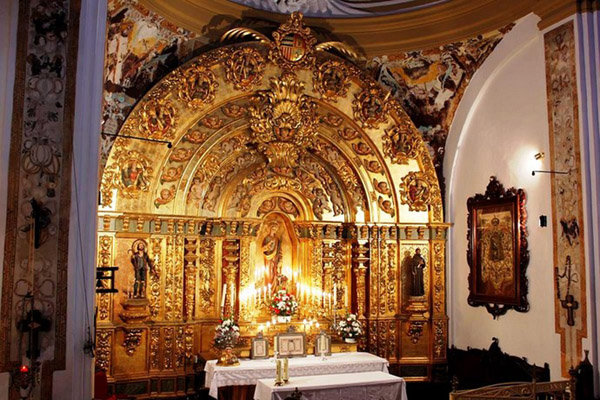 El templo muestra la clásica construcción barroca de planta rectangular con nave de tres tramos, cubierta por bóveda de medio cañón con lunetos brazos del crucero y presbiterio con bóvedas aveneradas sobre pechinas.