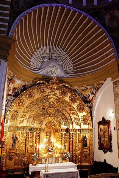 Lateralmente a la nave se disponen capillas comunicadas entre sí, con bóvedas de lunetos con el cañón perpendicular al eje de la nave.