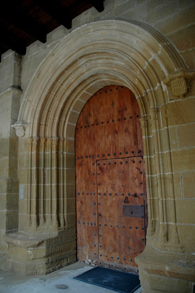 Abre al claustro a través de una sencilla puerta en arco apuntado, que apea en capiteles decorados con motivos vegetales de tradición gótica levantina, flanqueada por sendas ventanas geminadas en arco de medio punto.