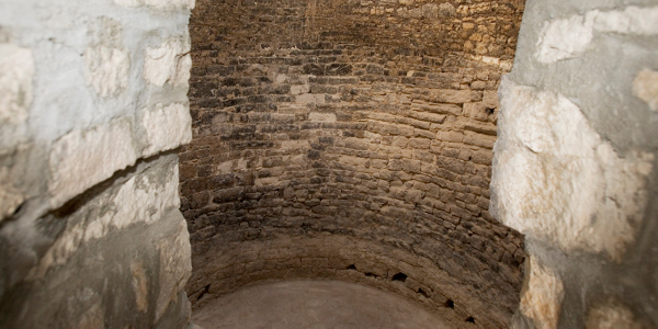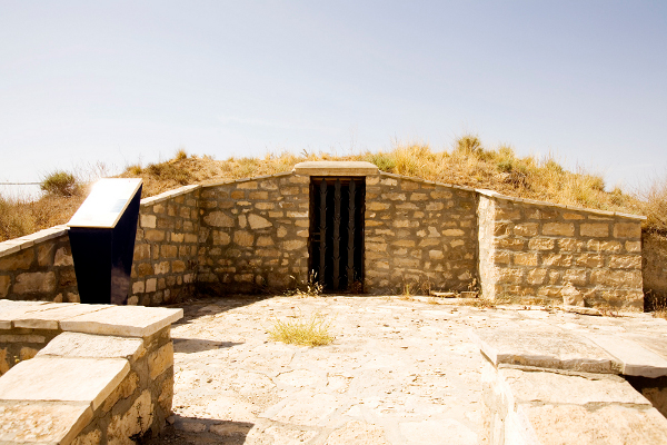 Para acceder al interior hay una única abertura, situada en la cara norte del montículo, a mitad de la ladera; a través de una escalera construida en la última restauración, se llega a una puerta adintelada que da paso a un pasillo con cubierta plana, que comunica con el interior de la estancia abovedada a una altura de 3,60 metros de la base.