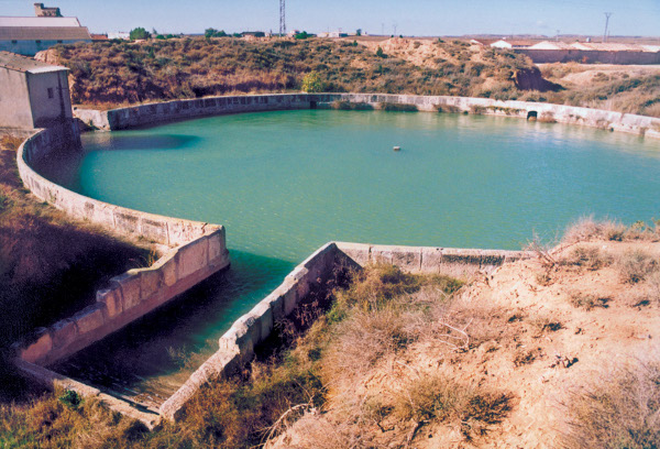 En el centro de la balsa se alza un pilón que sirve para medir el nivel del agua.