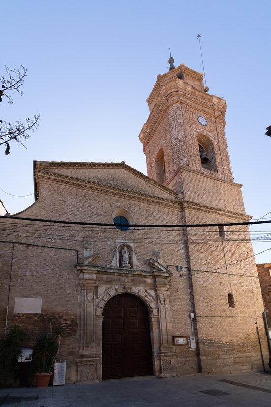 El templo consta de una sola nave de forma rectangular y seis capillas laterales, la central dedicada a Santa Margarita, patrona de la villa. En alzado está construida en ladrillo sobre basamento de piedra. La puerta de acceso se encuentra a los pies de la nave y cuenta con un arco de medio punto cuya rosca exhibe un relleno de motivos geométricos, enjutas con triángulos curvos y flanqueada por pilastras sobre podio. La portada se remata con un frontón triangular abierto y hornacina avenerada que contiene la imagen de la virgen. La fachada se cierra con un frontón triangular y adosada en su ángulo derecho se dispone la torre, sin sobresalir en planta, de cuatro cuerpos. Los dos primeros cuadrados, el tercero con ángulos convexos y pilastras, el cuarto presenta una base octogonal.