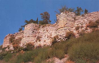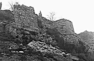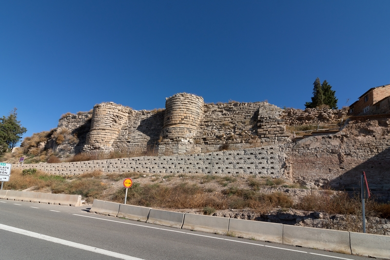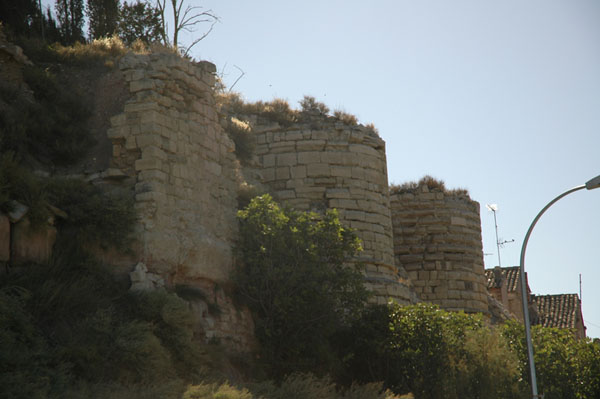 Del castillo palacio de los señores de Zaidín sólo subsiste un lienzo de muralla que reviste la ladera de la plataforma donde se asentaba la fortaleza.