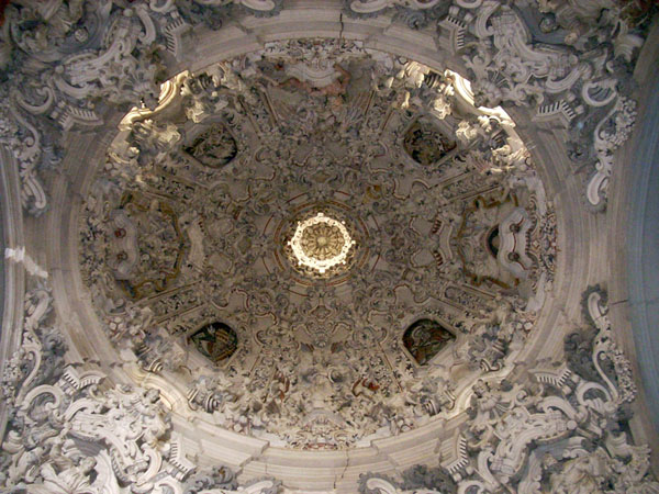 La nave se cierra con bóveda de aristas con lunetos, y el crucero con una gran cúpula de media naranja sobre pechinas, en cuyo tambor se abren cuatro ventanas, rematadas por una linterna en su parte central.