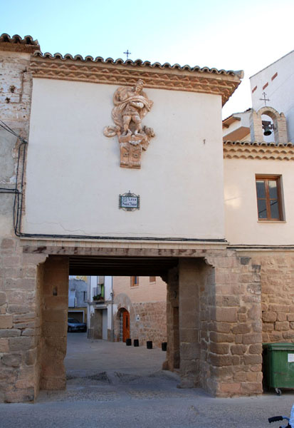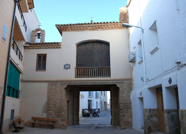 Se corresponde a una de las puertas de la población, situada en el barrio de los alamines. Se compone de dos pisos: el inferior, que se corresponde con el arco de paso de la puerta; y el superior, que se corresponde con la capilla propiamente dicha. El piso inferior, consiste en un pasaje en arco adintelado de madera, que forma el paso de la muralla. Construida esta fase en piedra arenisca, con la técnica de sillería. El piso superior, construido en ladrillo enlucido, constituiría la capilla, construida sobre la puerta, utilizando como arcos torales los dinteles de paso.