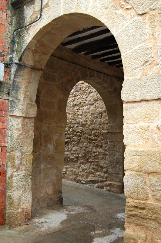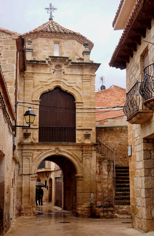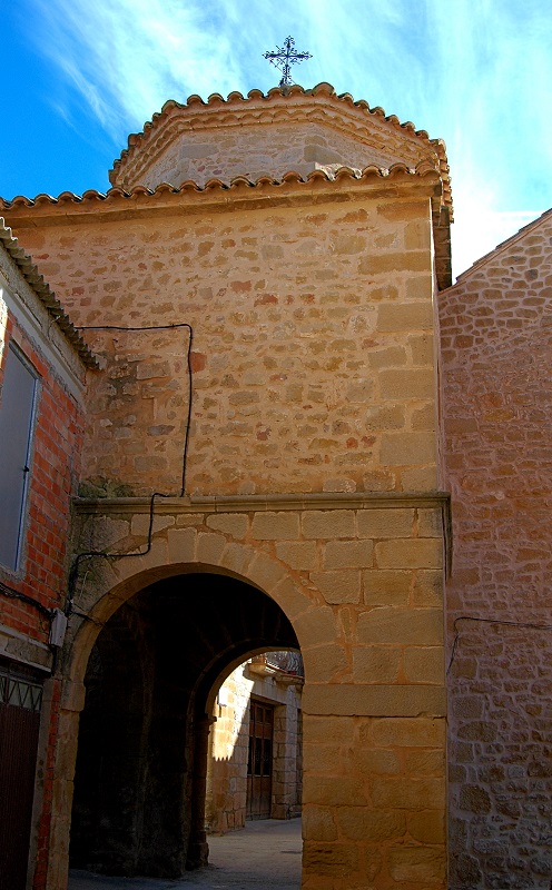Portal urbano con una capilla abierta construida sobre él. Las cuatro arcadas de la planta baja, así como toda la fachada principal, están construidas con sillería, y las restantes fachadas con mampostería.