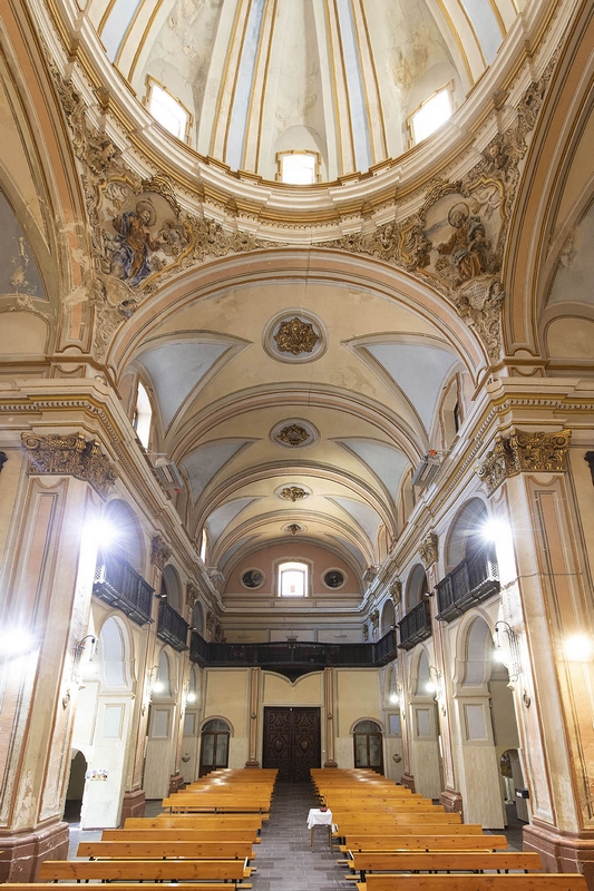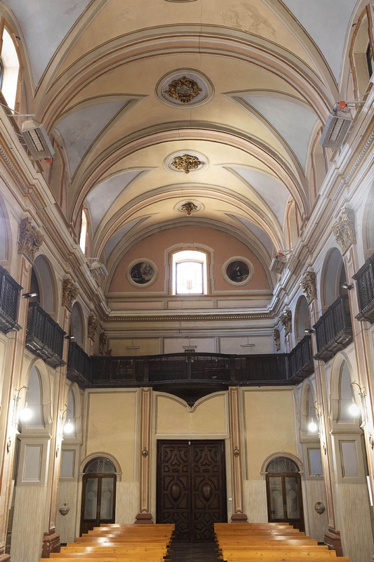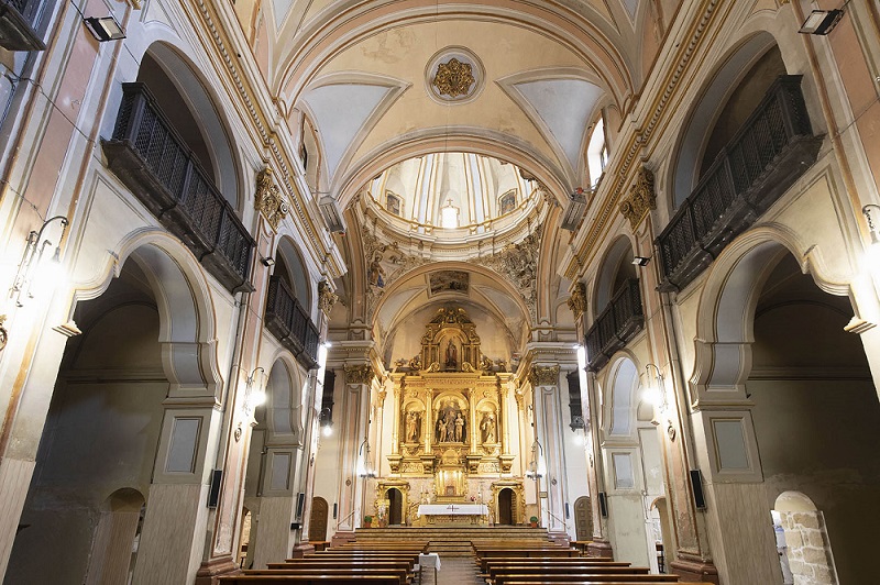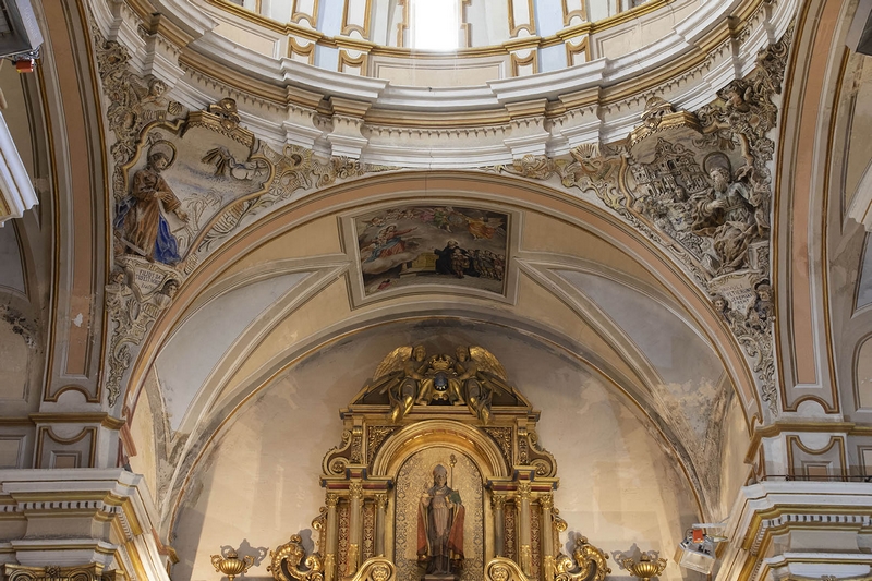 Tiene una nave cubierta con bóveda de medio cañón con lunetos y crucero con cúpula sobre pechinas decoradas con estucos de santos.