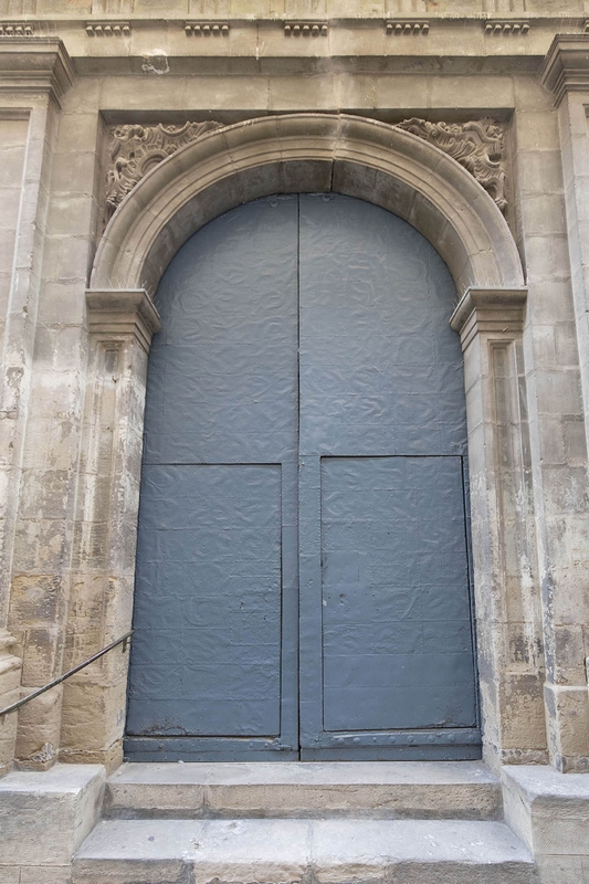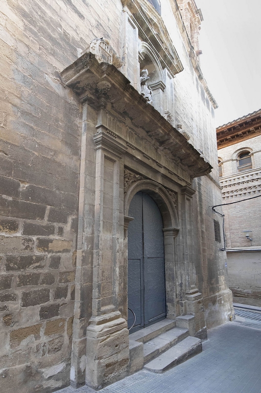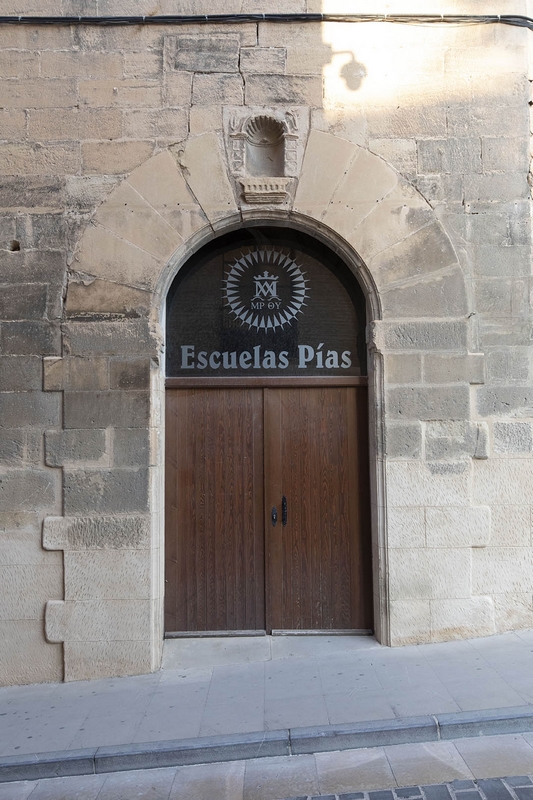 La portada muestra una mezcla de gusto rococó y neoclásico. En ella hay una imagen, también barroca, de San José de Calasanz.