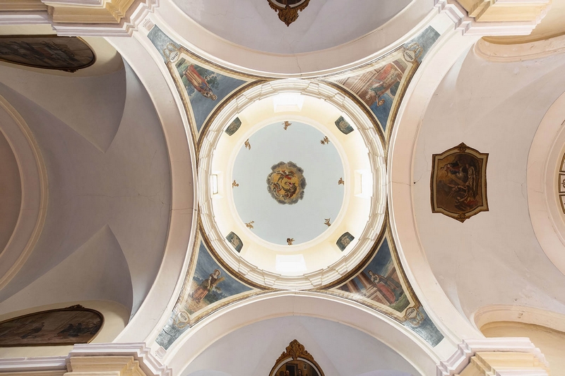 Sobre la cúpula hay un cimborrio octogonal.