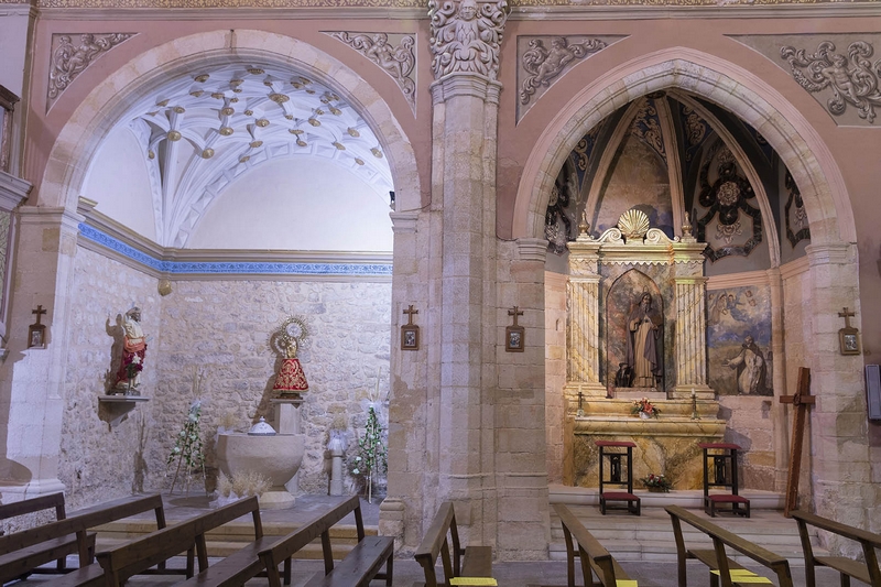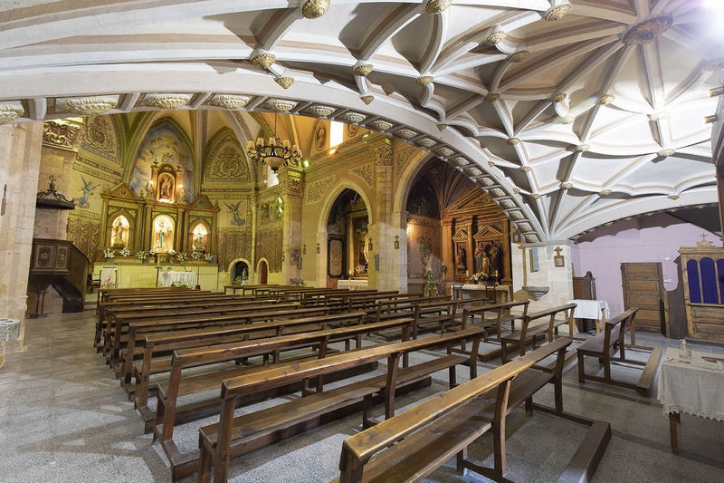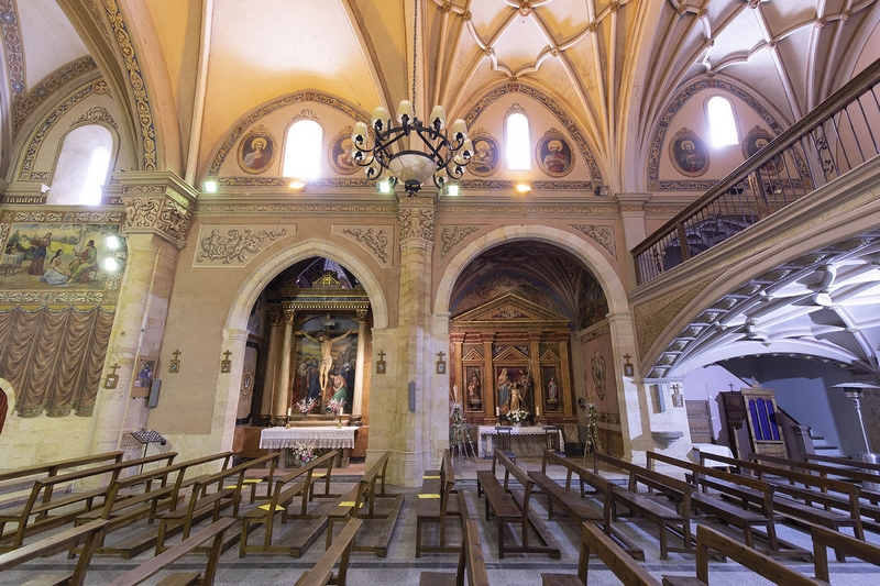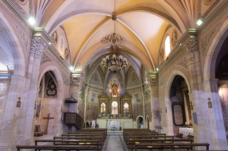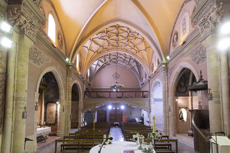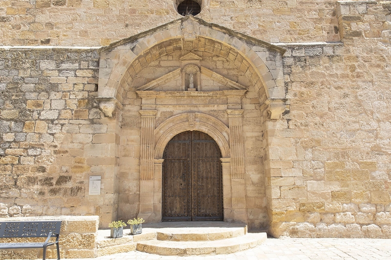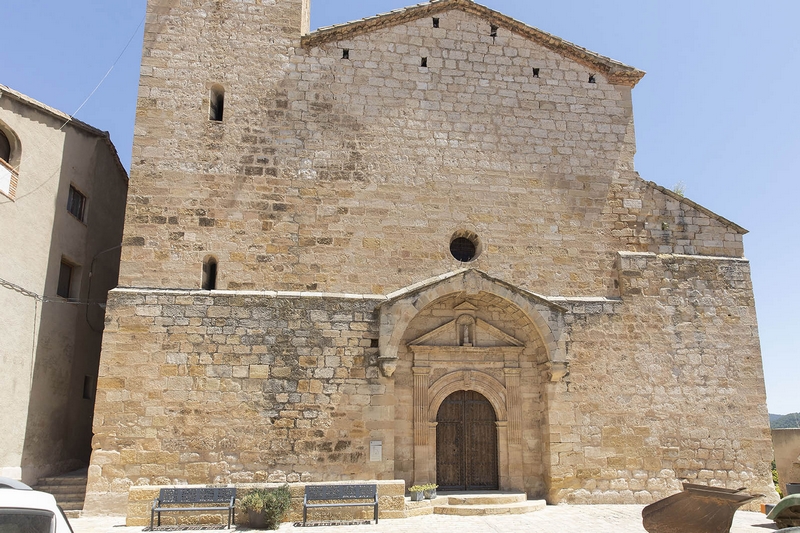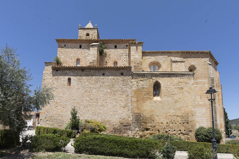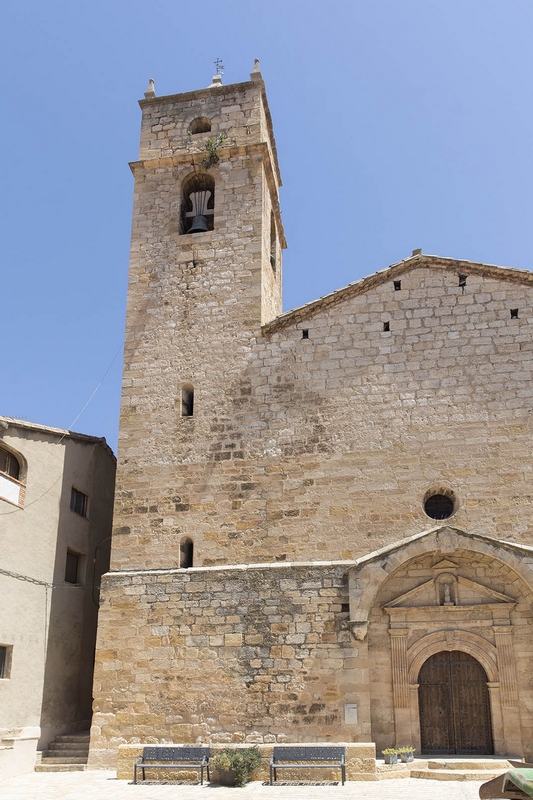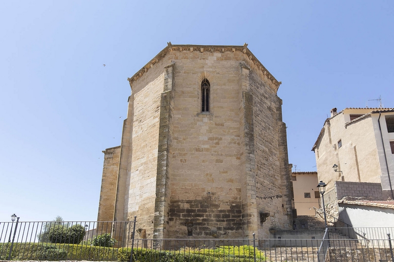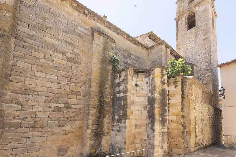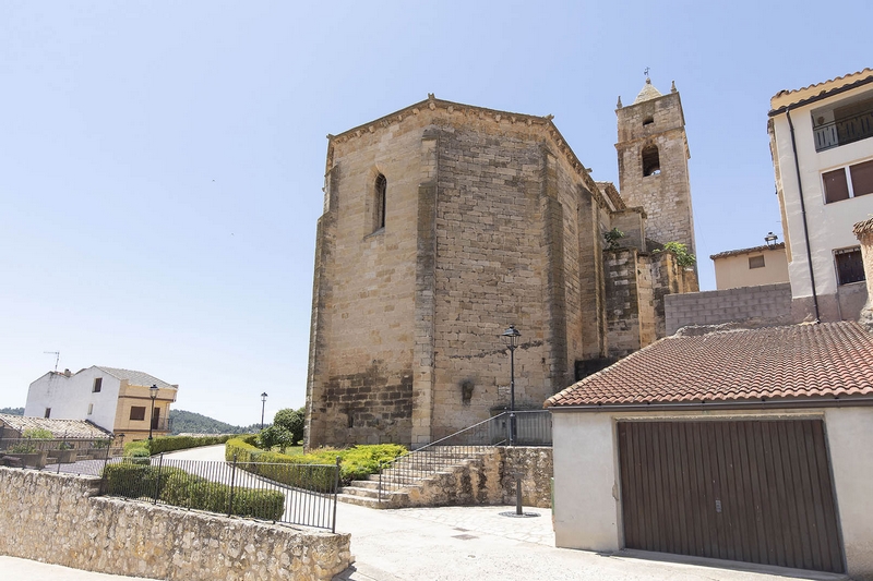Obra realizada en los siglos XIV y XV con rotundas transformaciones en su interior, realizadas en el siglo XVII, en que se cubrió con estucos. Es una iglesia de una nave de tres tramos con capillas laterales y cabecera poligonal. Los dos primeros tramos de la nave fueron transformados añadiendo las actuales bóvedas de crucería. Presenta coro alto de grandes dimensiones, elevado sobre arco rebajado y torre a los pies, en el lado del evangelio, con dos cuerpos, de planta cuadrada y remate de chapitel. Es de bella factura el exterior poligonal de la cabecera con contrafuertes en los ángulos. La portada está situada en los pies del templo. El acceso se realiza a través de un arco de medio punto decorado con gruesas molduras y flanqueado por dos robustas pilastras de fuste estriado y capitel liso. Estas dos pilastras sustentan un entablamento sobre el que se dispone un gran frontón triangular en el que se abre una hornacina. Todo este conjunto está cobijado por un grueso cuerpo en saledizo, cuyo límite inferior se define por un arco de medio punto y el superior por una estructura de doble vertiente. Precisamente en el ángulo superior de este elemento se dispone un gran escudo de la población.