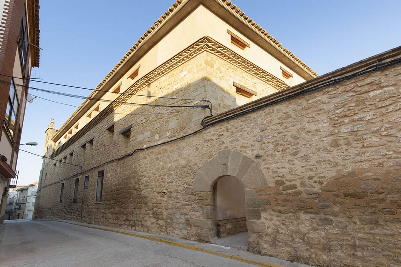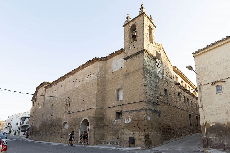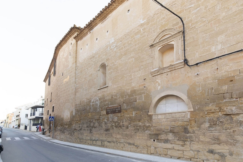 El exterior presenta una imagen maciza de gran sobriedad, con muros de sillería y mampostería. La fachada de la iglesia muestra una sencilla portada de medio punto, junto a la cual hay un arco, también de medio punto y sobre él se disponen algunas hornacinas. En el cuerpo meridional, se encuentra la portada de acceso al convento, también de medio punto, y tres huecos en el piso superior, con interesantes rejas de forja.