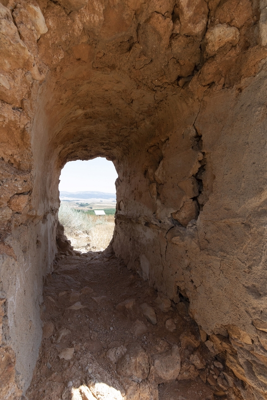 En los laterales de este hueco hay aperturas a sendos pasadizos que recorren el interior del muro, de difícil interpretación. Hacia el este (es decir, hacia donde debió estar el ábside) atraviesa el muro un pasadizo totalmente llano. En el lado opuesto se abre un segundo pasadizo, esta vez en pendiente, que asciende hacia dos vanos enterizos en arco que se abren en altura en el paramento del muro; podría tratarse de una a modo de "tribuna", con funciones similares a las de las tribunas de algunos templos barrocos, aunque esta interpretación está sujeta a dudas. Además, en el paramento de este muro, bajo uno de los huecos citados, se abre una hornacina con embocadura de medio punto y bovedilla de medio cañón, de funcionalidad desconocida.