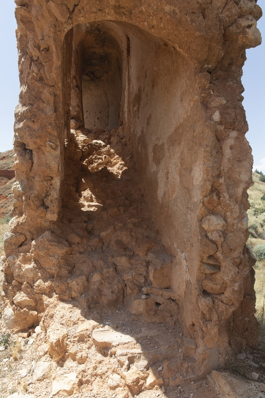 Se trata de dos gruesos muros de mampostería, muy tosca, con relleno de cantos y abundante arcilla.