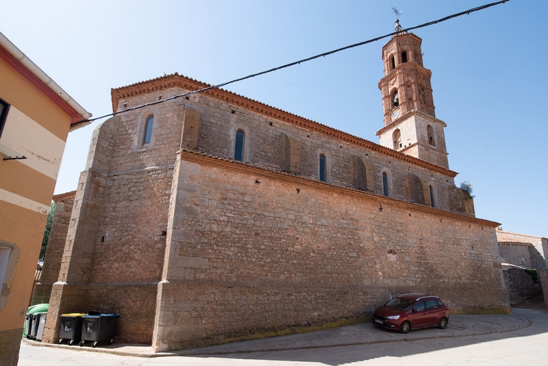 Edificio de finales del S. XVI. Como es habitual en las iglesias aragonesas de esta época, arquitectónicamente se encuadran en el estilo gótico, mientras que presentan motivos decorativos de estilo renacentista, sobre todo en las portadas.