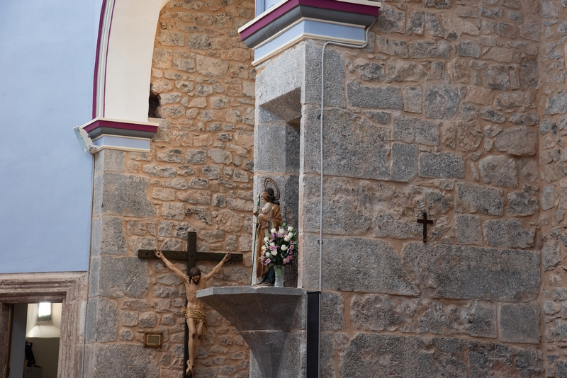 Cuenta con una única nave, en la que se abren capillas laterales de menor altura. Esta diferencia volumétrica se aprecia al exterior. La parte superior de la nave, de mayor altura y separada por un alero de tejas, presenta cuatro vanos abiertos a cada lado, dos en la cabecera y uno en los pies, así como los contrafuertes que soportan parte de la estructura.