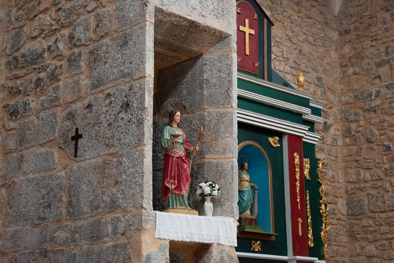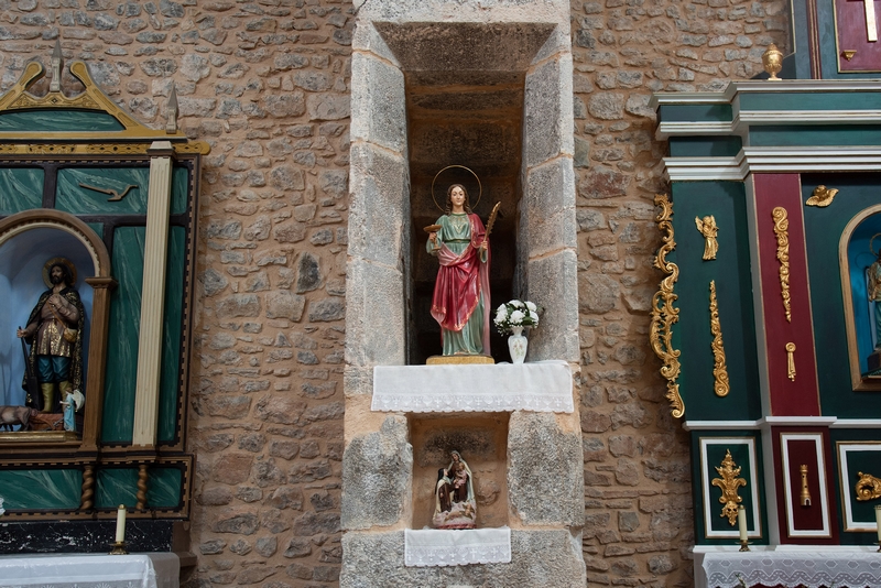 La planta es rectangular y la cabecera poligonal en prolongación de la nave. El material de construcción es mampostería.