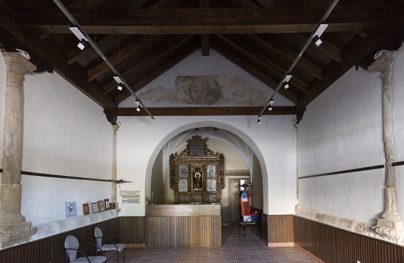 Ermita de nave única, con dos tramos y cabecera plana, en mampostería y cantería. La capilla es del siglo XVI y el atrio del siglo XVII. Al interior, la capilla se cubre con bóveda de crucerís estrellada. Lo más destacado del exterior es el atrio o “retiro” de cuatro pares de columnas toscanas con zapatas de madera, que está parcialmente tabicado.