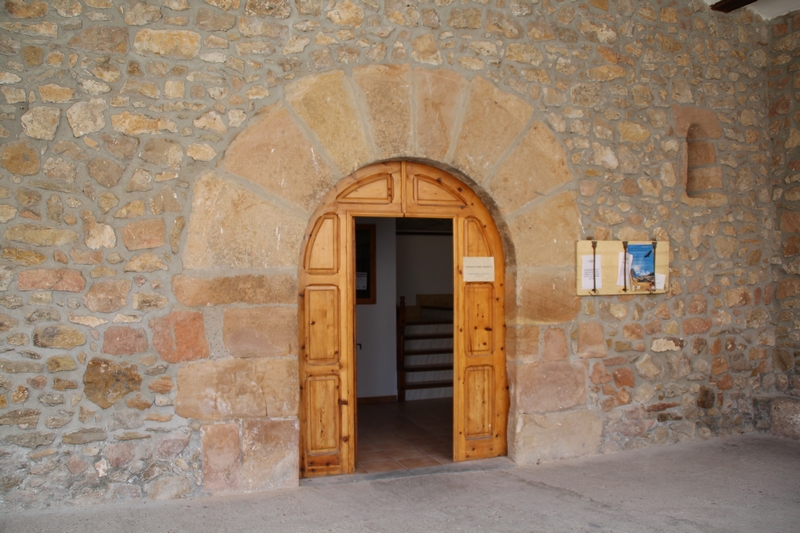 En los espacios interiores se ha respetado en la restauración las vigas de madera originales en los techos.