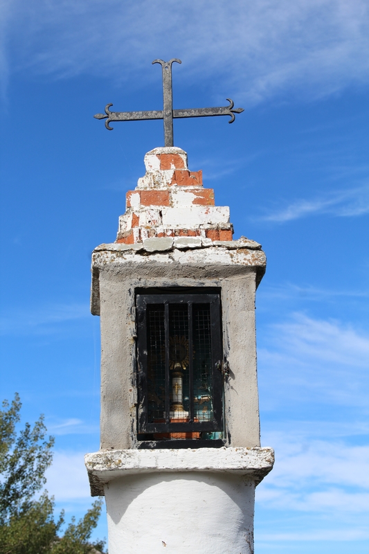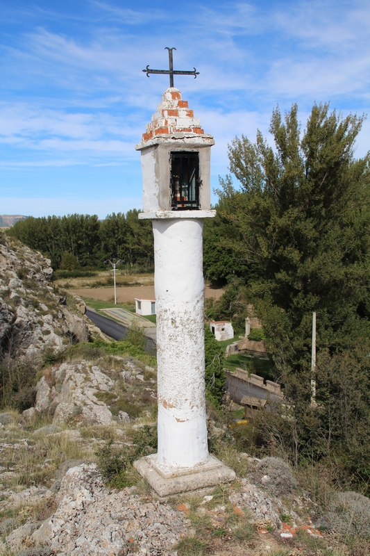 De una basa moldurada de piedra arranca un sencillo fuste de sección circular. Sobre él, separado por imposta, se alza el edículo cuadrangular, con una hornacina que alberga la imagen de la titular. El remate es un cuerpo escalonado coronado por una cruz de forja de brazos flordelisados.