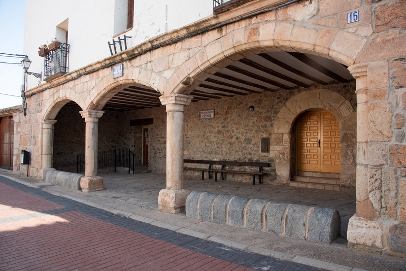 La casa consistorial es de planta rectangular y tres pisos de altura. La planta baja es de sillería con lonja de tres arcos rebajados sobre columnas dóricas; la segunda y tercera son de mampostería encalada. En la segunda planta hay tres balcones coincidiendo con la clave de los arcos, uno de ellos sin barandilla; encima de este último aparece un reloj de sol. Dentro de la lonja se encuentra la puerta de entrada, adintelada con sillares y en la clave una inscripción fechada en 1565.