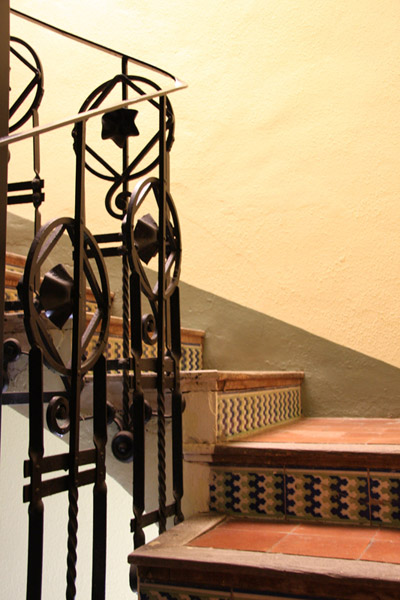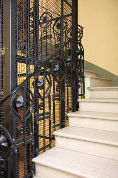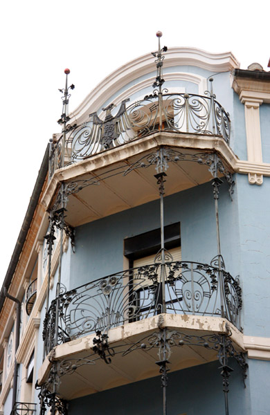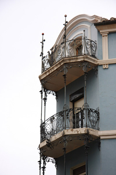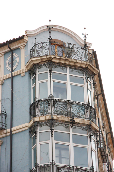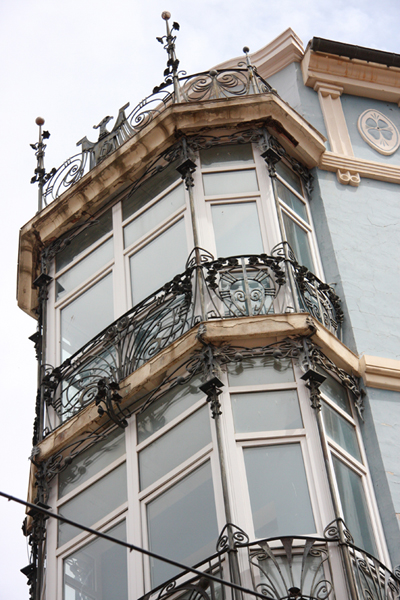 Destaca la excepcional rejería atribuida a Matías Abad, que aparece principalmente en balcones, huecos y miradores. En los dos primeros presenta una decoración lineal sencilla con motivos de inspiración sezesionista, mientras que en los miradores la decoración es más orgánica, dominada por formas curvas y vegetales de gran expresividad. Cabe destacar, por su singularidad, la presencia de motivos animales como las delicadas mariposas de la planta primera o las águilas que dominan la composición de las barandillas de la última planta.