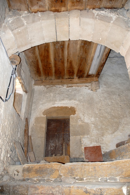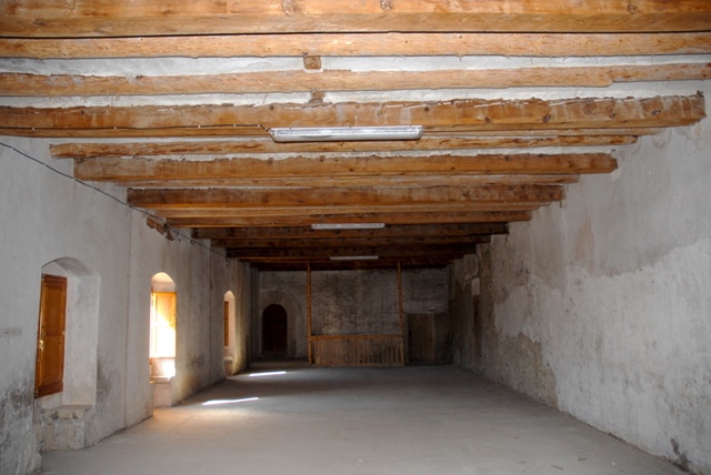 En el espacio entre el salón del ayuntamiento y el hospital hay una escalera de madera que permite subir a la falsa del ayuntamiento, situada en el piso superior. Esta sala, también muy amplia, debió tener uso no solo de almacenaje, sino que pudo ser utilizada como zona de servicio. Tiene dos puertas de acceso desde la calle trasera, que conducen a sendas salas separadas por una pared de madera.