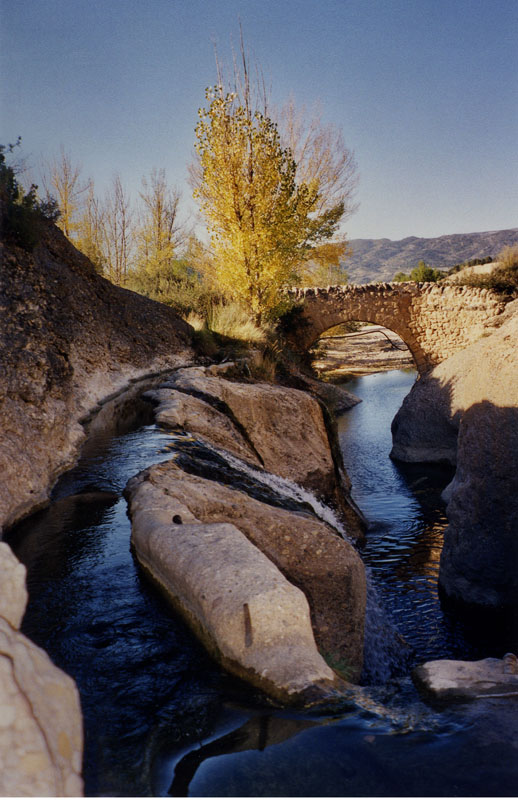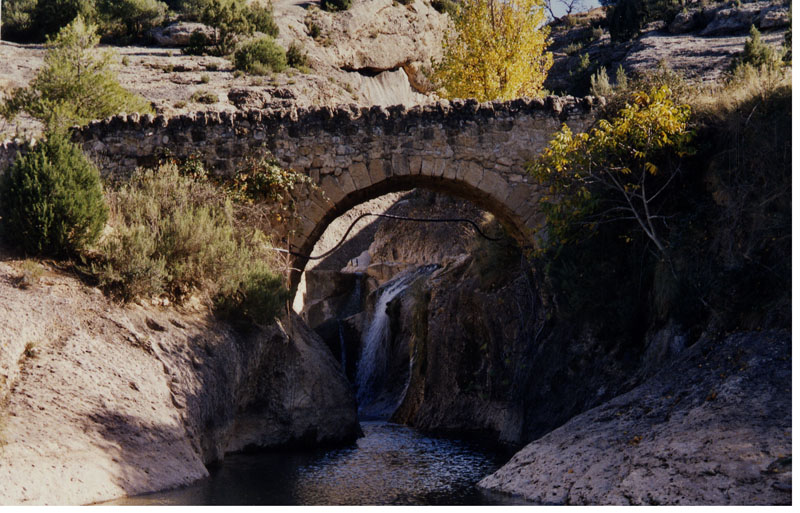 Puente de piedra contruido sobre las rocas que encauzan el río Bordón.
