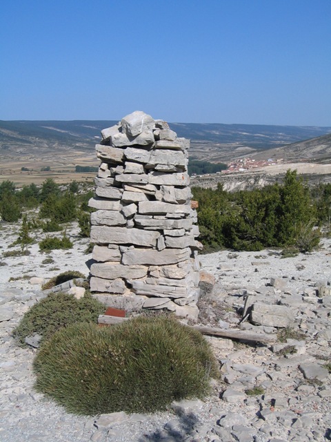 Pilar, de planta cuadrada, construido a base de piedras apiladas. Seguramente haya perdido altura por el desprendimento de algunas piedras.
